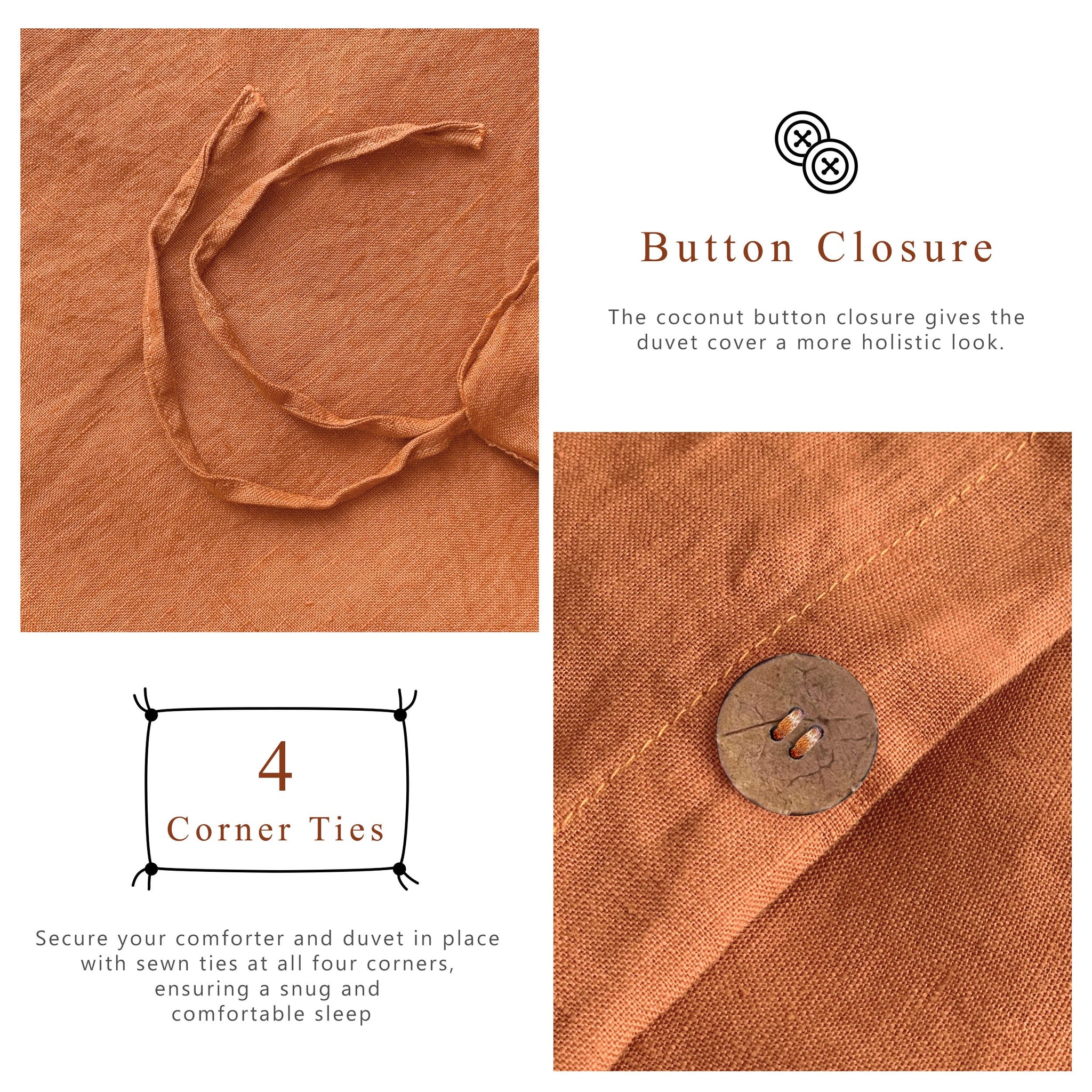 Bring a cozy, grounded elegance to your bedroom with this French linen duvet cover in a rich caramel-pumpkin terracotta hue. Perfect for organic, mid-century modern, or earthy-inspired interiors, its warm, muted tone pairs beautifully with natural textures and neutral accents.