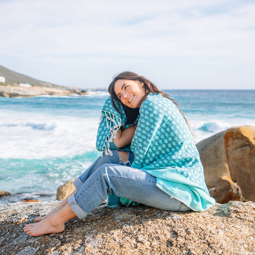 Fully reversible, Big Fish offers two complementary looks to suit your styling needs. Lightweight, breathable, and OEKO-TEX® certified, this organic cotton throw doubles as a sofa or bed accent, shawl, beach or bath towel, or picnic layer—combining soft, durable comfort with playful design.